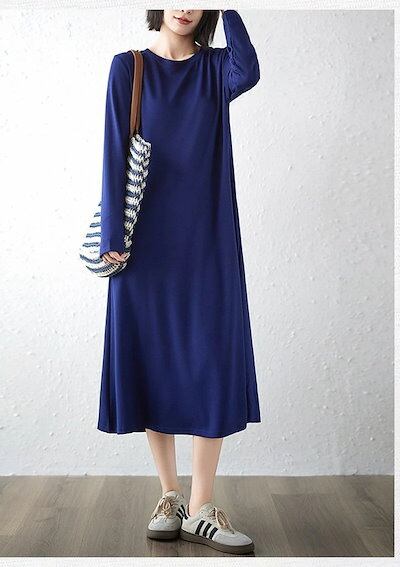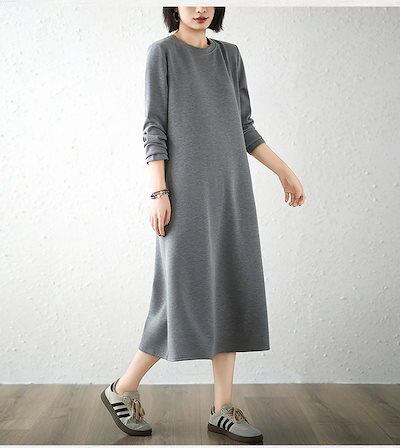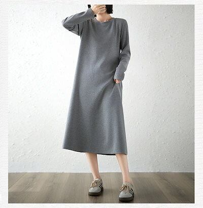 大人気! 秋冬まで穿ける ロングワンピース 長袖 レディース ワンピース シンプル インナーウェア Aライン 体型カバー スウェットワンピ クルーネック Tシャツワンピ ソフト 無地 長袖ワンピース