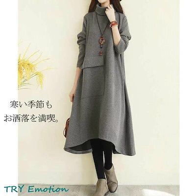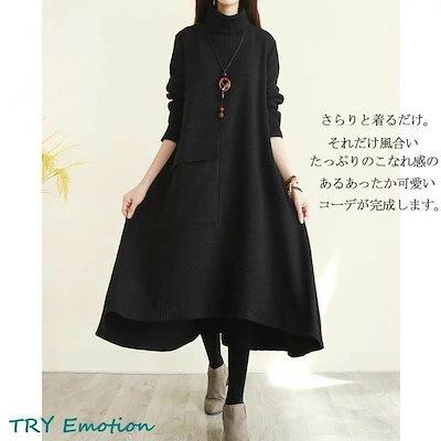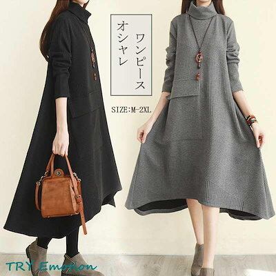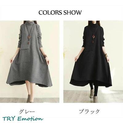 【大好評!超激安】 ワンピース レディース 秋冬 ロングワンピース 長袖 チュニック ロングワンピ ミモレ丈 タートルネック 無地 大きいサイズ 体型カバー ハイネック フレア