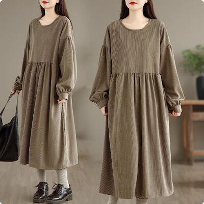 人気商品超目玉秋冬 ビッグサイズ レディースワンピース コーデュロイ スイート パフスリーブ 超目玉新品 ワンピース ゆったり ロングスリーブ 長袖ロング マキシ丈ワンピ