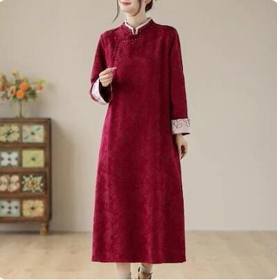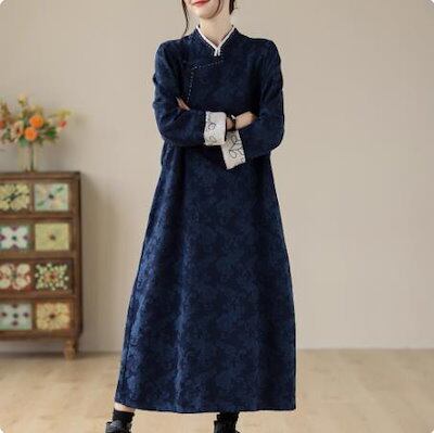 最安値挑戦!!大好評高レビュー秋冬 モダン チーパオ ワンピース レディース カジュアル ビッグサイズ 超目玉新品 ゆったり スタンドカラー ドレス その他 ワンピース ドレス