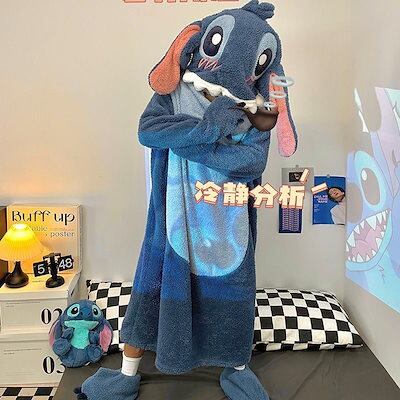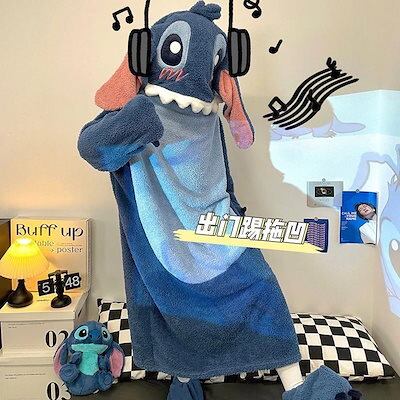着ぐるみパジャマ スティッチパジャマ裏地付き厚手コーラルフリープワンピースパジャマ レディース 新作秋冬フランネル大サイズホームウェアメガ割