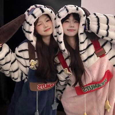 着ぐるみパジャマ 2025新作スヌーピーコーラルフリースワンピースパジャマ レディース 秋冬カップル用裏地付き厚手フード付きホームウェアメガ割