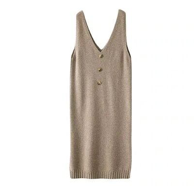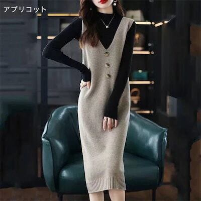 超激安セールニットワンピース レディース 無地 秋冬 ノースリープワンピース ニットソー ロング丈 Vネック セーター 韓国風 オシャレ 着痩せ通勤 ニットワンピ