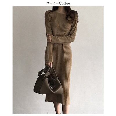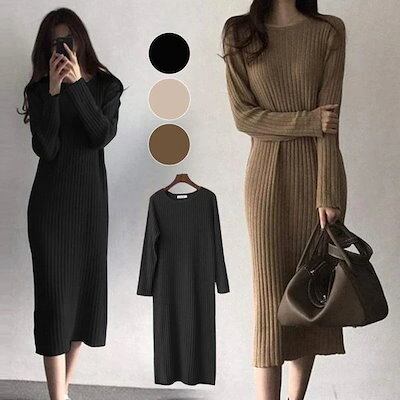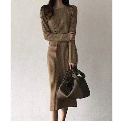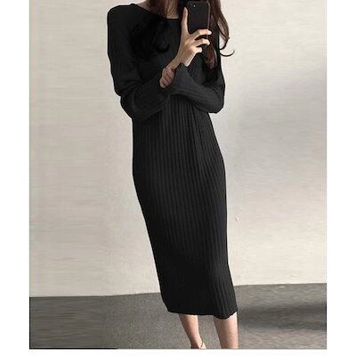 【大好評!超激安】 ワンピース レディース マキシ丈 ロング丈 おしゃれ 可愛い ゆったり ゆるフィット 体型カバー 秋冬 長袖 着痩せ 秋冬新作 ニット