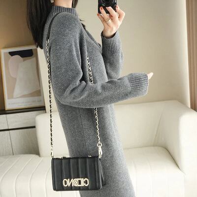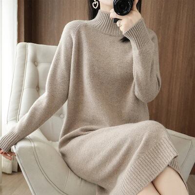 新登場! 2025 秋冬 ニットワンピース ロング丈 ワンピース 秋冬新作 ゆったり ハイネック ロング丈 セータードレス レディース ニットワンピ