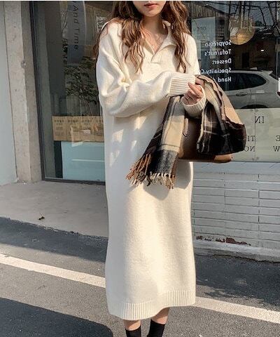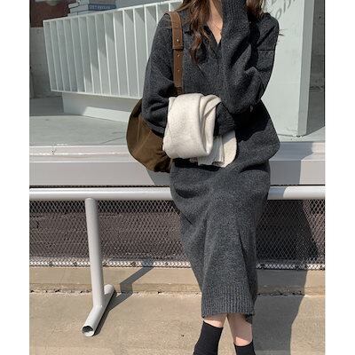 【2025新作登録】2025 秋冬 ニットワンピース 無地 インナーワンピース 新作 ロング丈 カジュアル ゆったり 厚手 ニットセーターワンピース セータードレス レディース