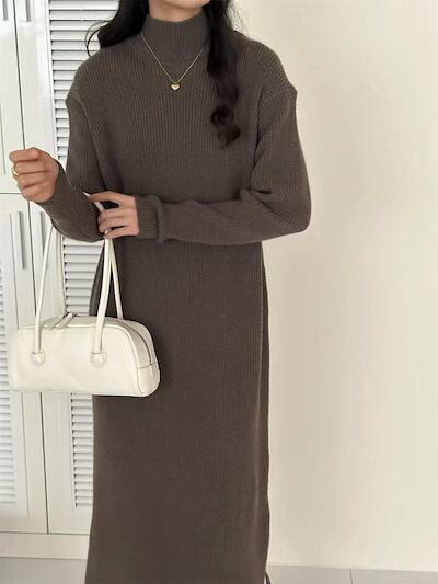 2025大人気2025 秋冬 ニットワンピース 韓国ファッション 無地 ハイネック 新作 ゆったり インナーワンピース セータードレス レディース ニットワンピ