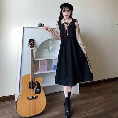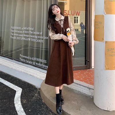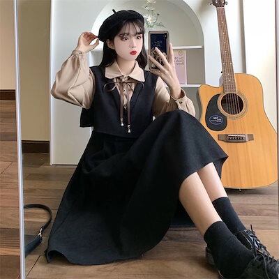 ワンピース 秋冬 2025 韓国ファッション 春秋 長袖 可愛い 大きいサイズ ウエスト引き締め ワンピース レディースファッション