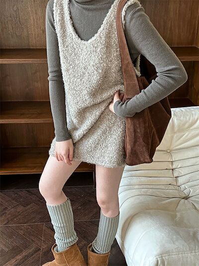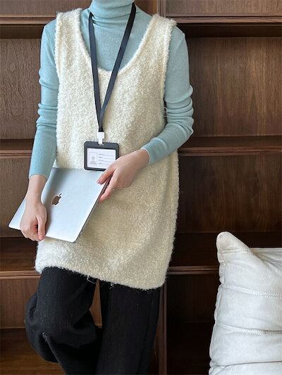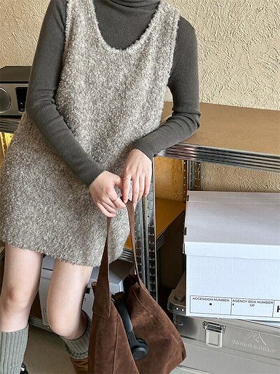 ニット ベスト レディース プルオーバー チュニック ワンピース ベストワンピース Uネック 春 秋 冬 レディース ロングベスト 体型カバー ニット ベスト ゆったり プルオーバー ニット セーター