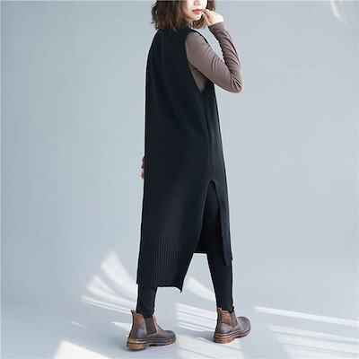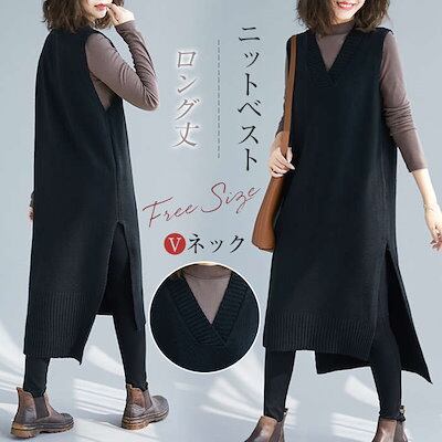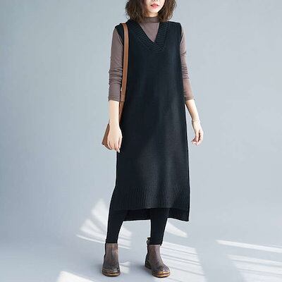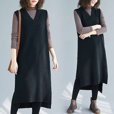 ニットベスト ロングベスト ニットワンピース 40代 ニットワンピ レディース ノースリーブ 秋冬 Vネック ロングワンピース おしゃれ ロングセーター 韓国風 30代 50代