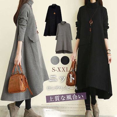 ロング ワンピース レディース 春 秋冬 秋 ニット ロング ワンピース 長袖 ゆったり 暖かい マキシ 大きいサイズ カジュアル 無地 おしゃれ 上品 通学 黒