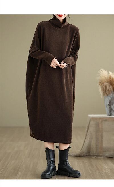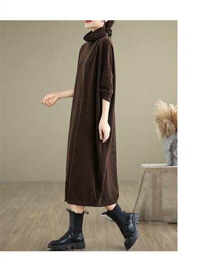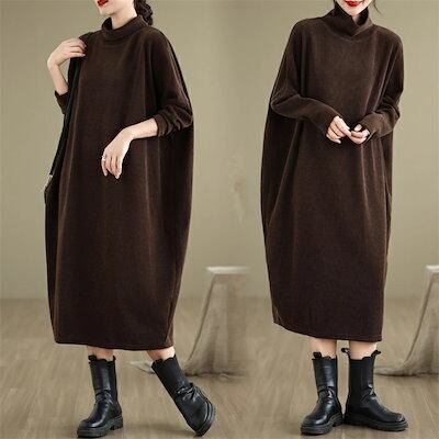 ワンピース ロング レディース ロング ワンピース ワンピ ロング丈 ハイネック タートルネック 無地 秋 冬 長袖 体型カバー 大きいサイズ シンプル ゆったり きれいめ お洒落 ガーリー カジュア