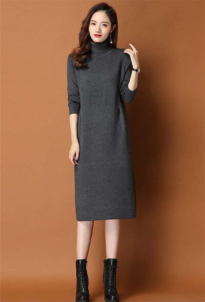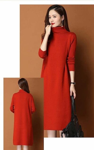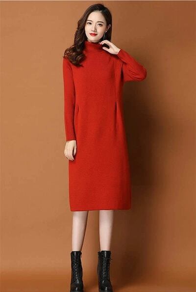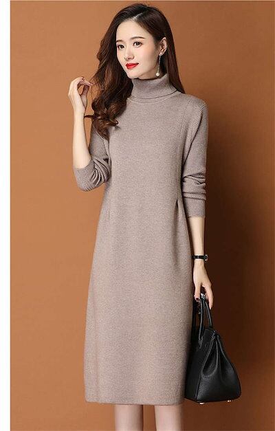 ワンピース レディース 秋冬 ニットワンピース ひざ丈 ワンピース ニット ニットワンピ 大きいサイズ 膝丈 ハイネック 長袖 無地 体型カバー オシャレ チュニック カットソー 20代 30代 40