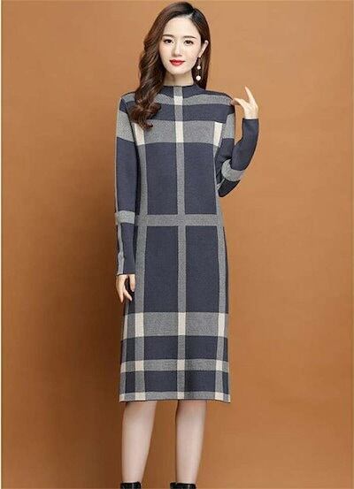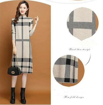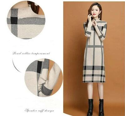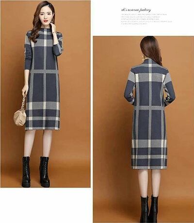 ニットワンピース ワンピース 冬 レディース 秋冬 ロング ニットワンピ ロング丈 きれいめ ニット チェック柄 ニット セーター ゆったり 韓国風 大人 40代 体型カバー 着痩せ 秋 冬 おしゃれ