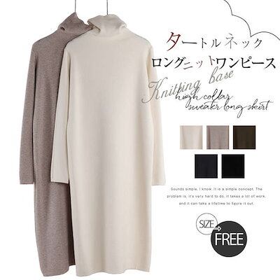 ニットワンピース マキシワンピース レディース 秋冬 ロング ハイネックワンピース ロングニット タートルネック マキシ丈 ロングワンピース ニットソー インナー カットソー ベーシック 体型カバー