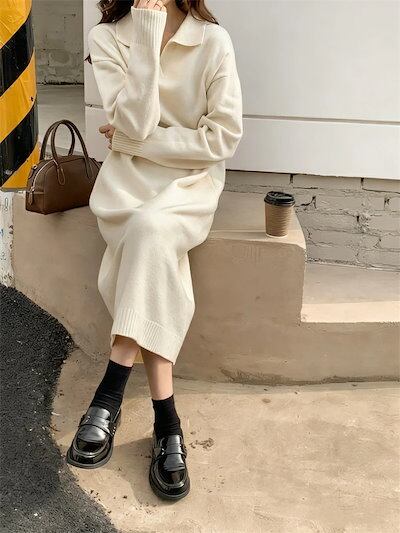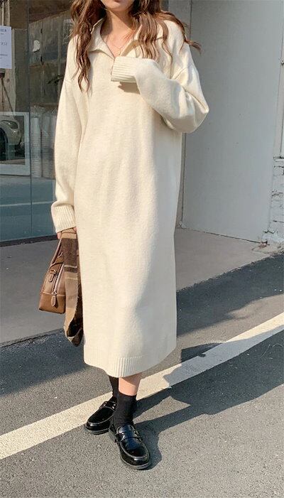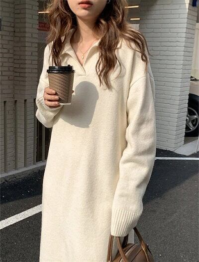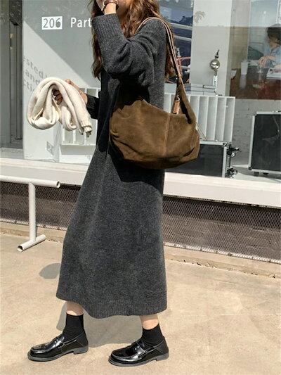 ニットワンピース ワンピース レディース 秋冬 ニット セーター ロングワンピース ロングニット ロング丈 長袖 ワンピ ニットセーター 重ね着 レイヤード 無地 カットソー ゆったり 体型カバー カ
