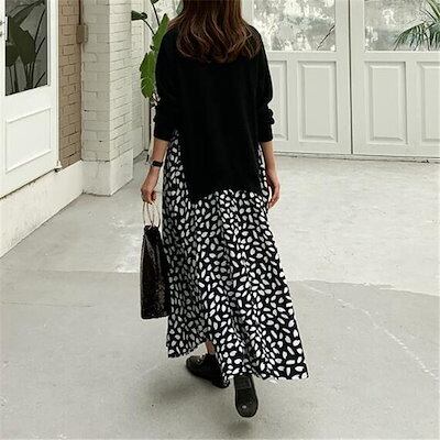 ドッキングワンピース 秋冬 ニットワンピース レディース 40代 ロングワンピース 春 秋 長袖 切り替え きれいめ フレア オシャレ 通勤 お出かけ 体型カバー 大人 30代 50代 送料無料
