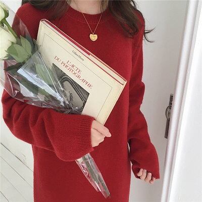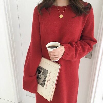ニットワンピース ワンピース 冬 ロングワンピース ニット レディース 秋冬 ニットワンピー ラウンドネック ニット 膝丈ワンピース ゆったり 可愛い 体型カバー カジュアル 秋 春 40代 通勤 ミ