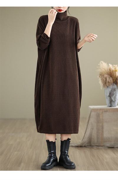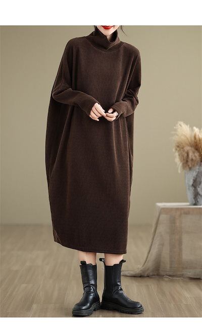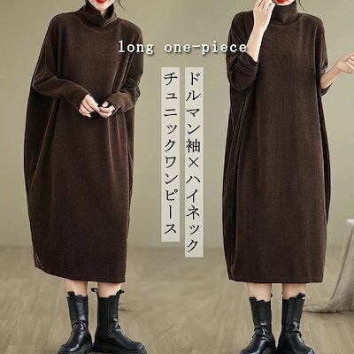 ワンピース チュニック レディース 秋冬 ロングワンピース ハイネック ロング 無地 防寒 ニットワンピース 長袖 ロングワンピ 体型カバー ゆったり タートルネック 大きいサイズ 可愛い ひざたけ