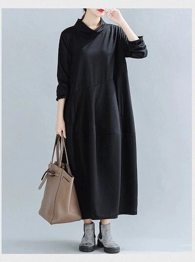 ワンピース レディース 秋冬 ロングワンピース プチハイネック 長袖 チュニック ロングワンピ ミモレ丈 ポケット付き 無地 マキシワンピース 大きいサイズ キルティング 体型カバー おしゃれ 通勤