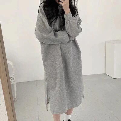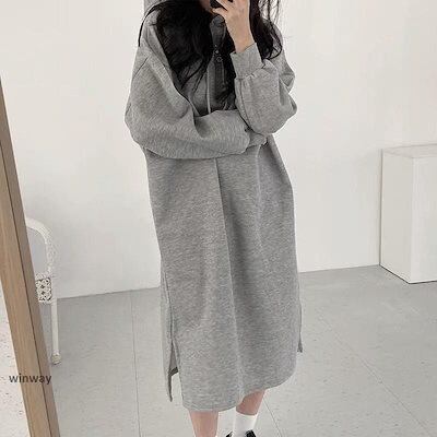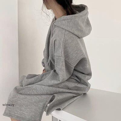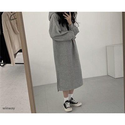 新作 ワンピース レディース 秋冬 秋服 ロング丈 パーカーワンピース ミモレ丈 フード付け 新品 大人気 長袖 綿混 無地 ロングワンピース 韓国風