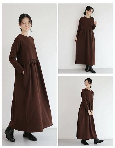 ワンピース マキシワンピース 長袖 レディース 秋冬 ゆったり マキシワンピ ロングワンピース ワンピ ロングワンピ 長袖ワンピース フレア ワンピ ルームウェア ロング丈 タック入り 体型カバー ポ