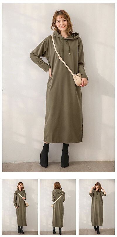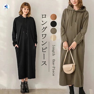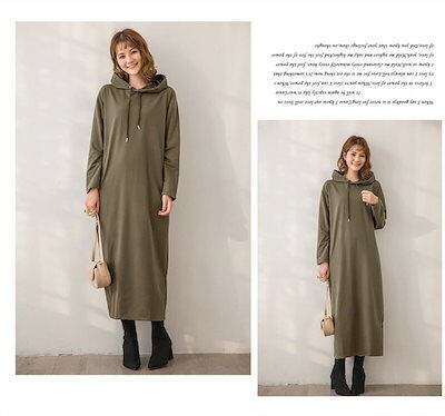 ワンピース レディース ロングワンピース Aライン 長袖 スウェット 冬 マキシ丈 パーカーワンピース ロングワンピース 秋 マキシワンピース 体型カバー フード付き 無地 ポケット付き 長袖 ゆるっ