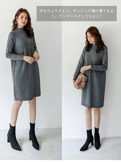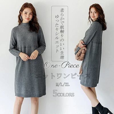 ワンピース ニット レディース チュニック リブニット ニットワンピ セーター ロングワンピース カットソー ロングニット 冬物 無地 あったかい 膝丈 長袖 ワンピース トップス 秋冬 ニットソー