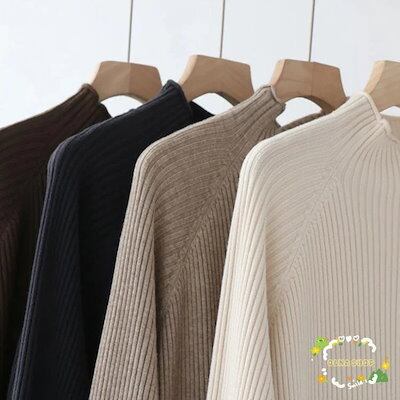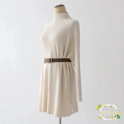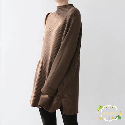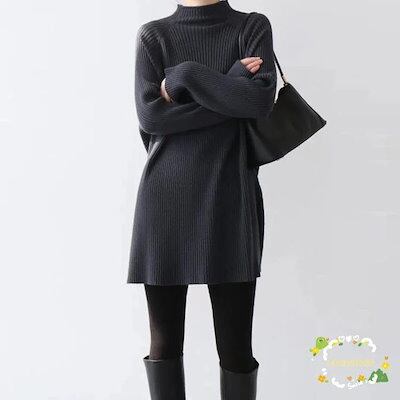 ニットワンピース ニット セーター トップス レディース モックネック 長袖 秋 冬 チュニック 秋冬 無地 プチハイネック ゆったり ロングニット