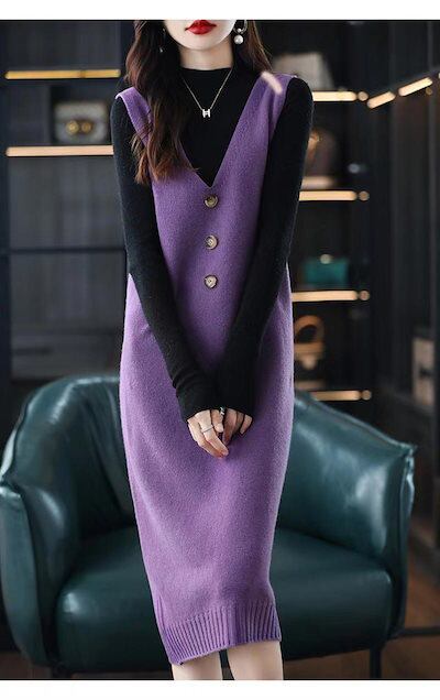 ワンピース ロングワンピース ニットワンピース レディース ジャンパースカート 秋冬 ベスト ロング Aライン ロングベスト ノースリーブ ニットベスト ニット ゆったり Vネック ロングワンピ マキ
