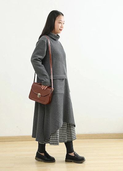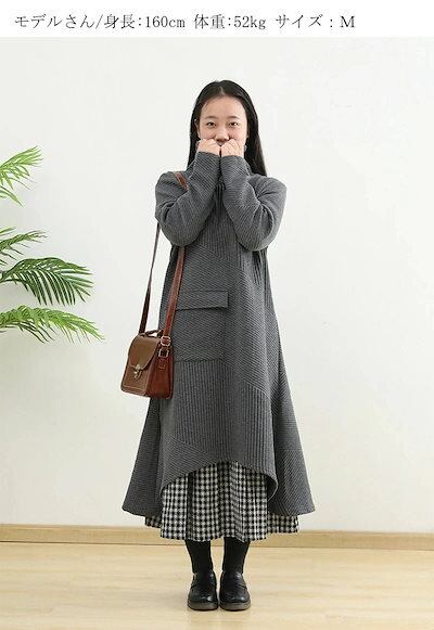 ワンピース レディース 秋冬 ロングワンピース 長袖 チュニック ロングワンピ ミモレ丈 タートルネック 無地 マキシワンピース 大きいサイズ 体型カバー ハイネック フレア Aライン 前後差あり お