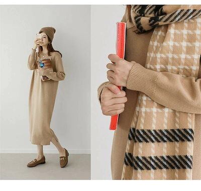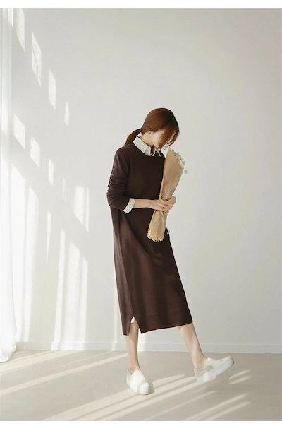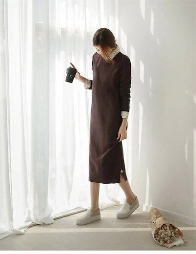 ニットワンピース ワンピース チュニック ロングワンピース マキシ レディース 秋 冬 無地 ニットソー ロングワンピ 柔らかい クルーネック コーデ カットソー ベーシック ゆったり シンプル ベー