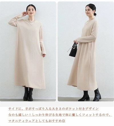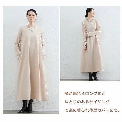 マキシワンピース ワンピース レディース 無地 秋 ロングワンピース 大きいサイズ 体型カバー 冬 ゆったり ロングワンピ ラウンドネック マキシ丈 フレア ワンピ 長袖 秋冬 黒