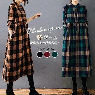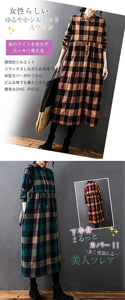 シャツワンピース 長袖 秋 冬 レディース ワンピース チェック コート 大きいサイズ 綿混 パーカー ミモレワンピース ゆったり 30代 40代 ミモレ丈 Vネック ベルト 体型カバー ミモレワンピ