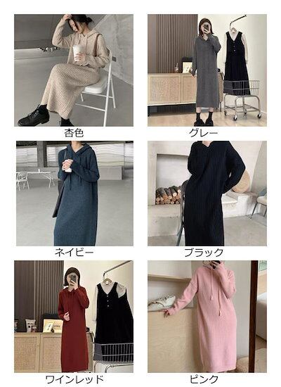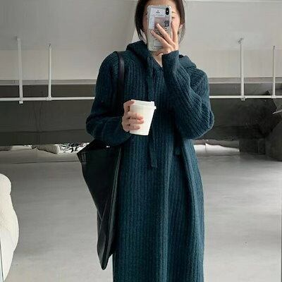 【9月新作】ワンピース ニット レディース ニットワンピース 長袖 ロングパーカー パーカー パーカーワンピース ロングワンピース 秋 冬 セーター ロング丈 ロング ゆったり カジュアル 暖かい 厚