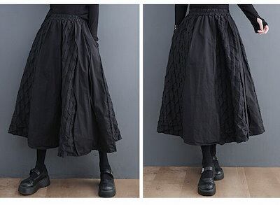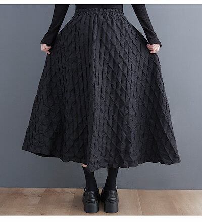 【9月新作】スカート ロング レディース 黒 フレアスカート フレア バルーンスカート ボトムス 春 秋 冬 ロングスカート ミモレ丈 シンプル きれいめ 総柄 魚の鱗模様 大人 可愛い ブラック カ