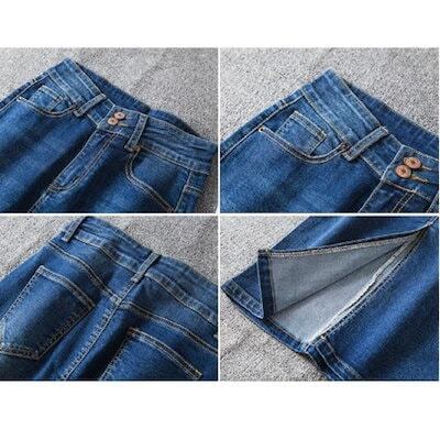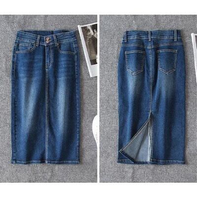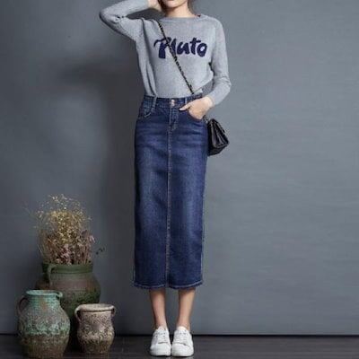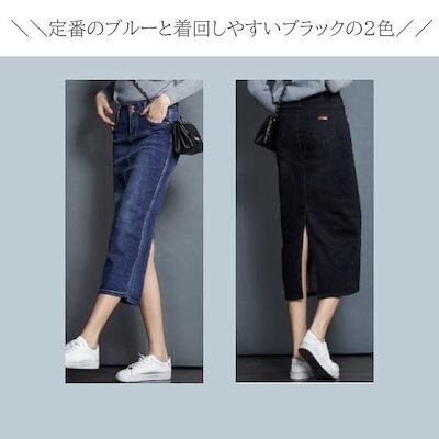 【9月新作】デニムスカート ロング 膝丈 スリット レディース 秋冬 タイト ストレッチ オールシーズン ロングスカート きれいめ ミモレ丈 ロング丈 着痩せ