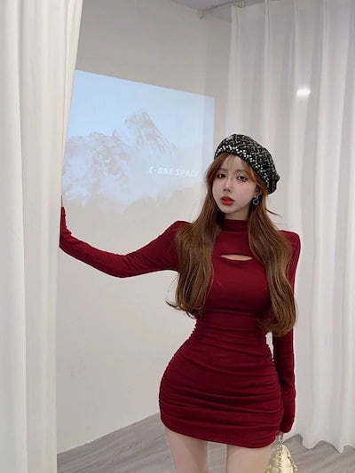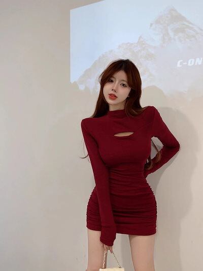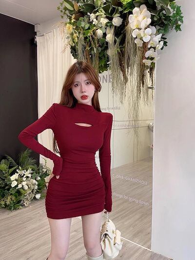 【9月新作】ワンピース 韓国 冬 ワンピース 秋冬 ワンピース ドレス レディース ワンピース スリムなハイネックドレス 韓国版長袖ヒップドレス 秋冬新作 2024