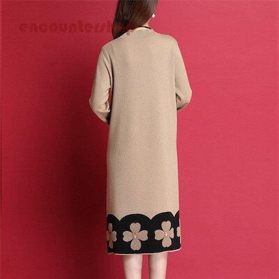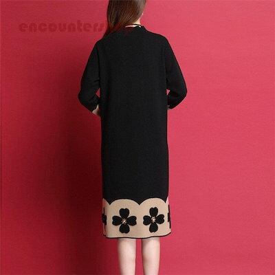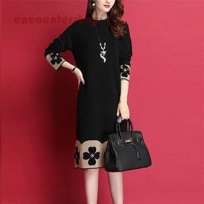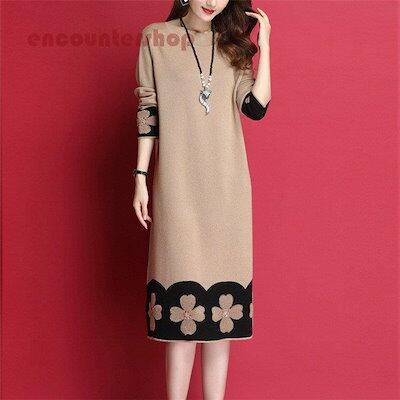 18ニットワンピース レディース 30代 40代 50代 秋冬 膝丈 配色 セーター メリヤス ワンピース きれいめ 上品 ワンピース 長袖 体型カバー 通勤 着痩せ 大人