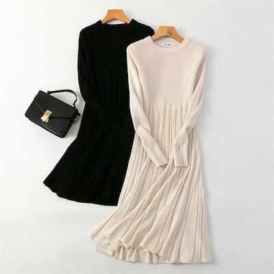ニットワンピース レディース 40代 マキシ丈ワンピース 長袖 秋冬 ニットセーター 無地 プリーツスカート ロング丈 上品 通勤 結婚式ドレス 着痩せ