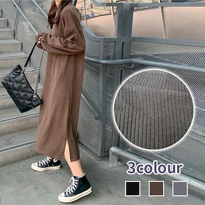 ワンピース レディース 長袖 膝丈 ワンピ リブ 無地 シンプル カジュアル 秋冬