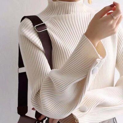 人気なリブニット 秋冬新作 ニットセーター レディース通勤 セーター ハイネックリブ ニット トップス ニット レディース ニット韓国ファッションカシミヤタッチ 福袋