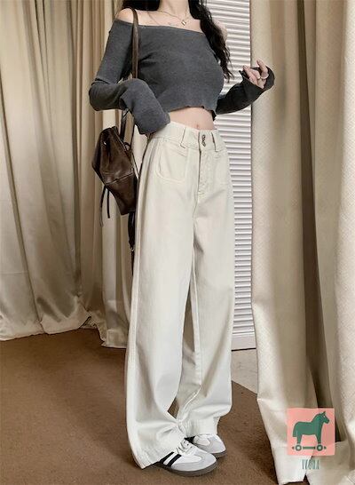 2024春夏パンツ デニム ジーンズ ワイド ストレート ハイウエスト 脚長効果 美脚効果 細見え 秋冬 白 カジュアル 韓国ファッション レディース お出かけ