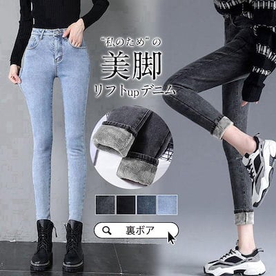 超人気 スキニーパンツ レディース 秋冬 タイト 裏起毛 裏ボア レギンス デニムパンツ ハイウエスト ストレッチ 秋冬 ジーンズ 九分丈 八分丈 ロング丈 細身 通勤