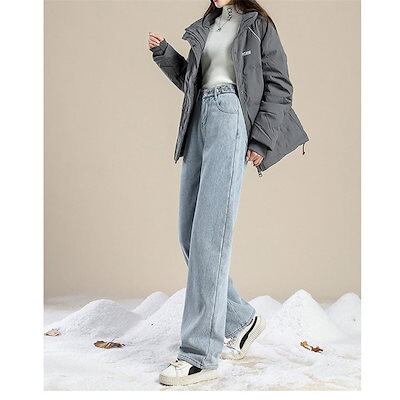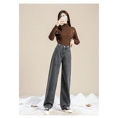 デニムパンツ レディース ワイドパンツ 裏起毛 裏ボア ジーンズ 厚手 ハイウエスト 秋冬 ジーパン 保温 防寒 暖かい ロングパンツ ゆったり 通勤