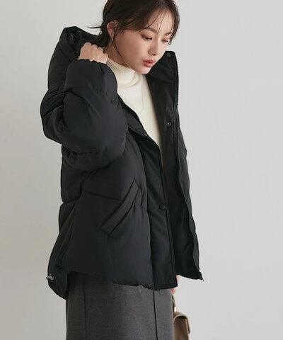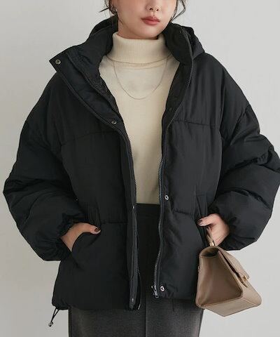 冬SALE!フェイクダウンラウンドコート コート フェイクダウン シンプル アウター 中綿 ラウンド ドロスト タフタ素材 ピエロ