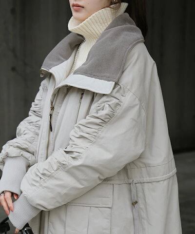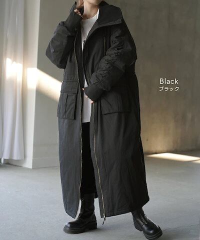 コート 中綿 ロング レディース アウター 2way 無地 長袖 リブ タートルネック ハイネック ロングコート オーバー 切り替え ドロップショルダー ダウン ベンチコート ダウンコート あったか