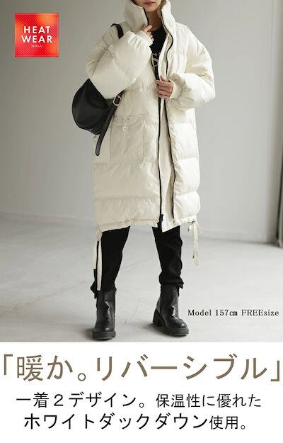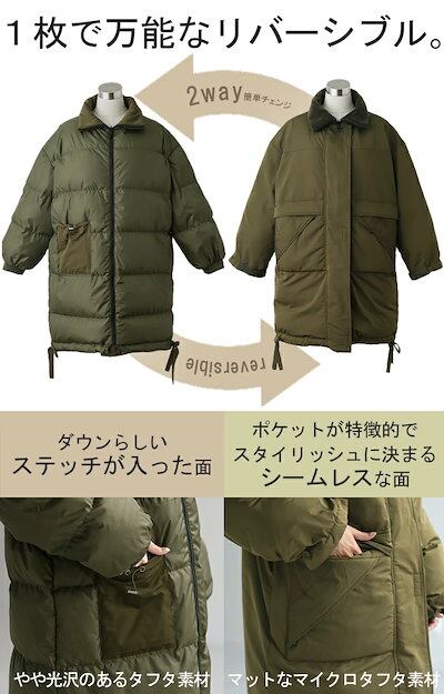 2WAY 『 ダウン 100% 羽毛 』 ロング アウター レディース リバーシブル 中綿 コート 暖か ベンチコート スタンドカラー フード ダウンジャケット ダウンコート ロングコート 大きいサイ