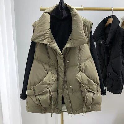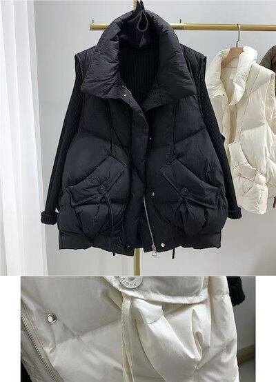 ダウン綿ベスト レディース 冬 新作 アウター 韓国風 おしゃれ 人気沸騰 トレンド リボン付き ベスト 綿入れ