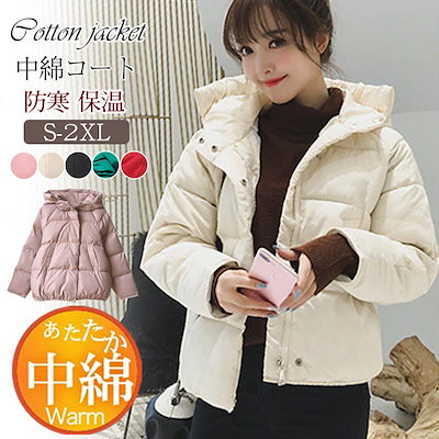 中綿ジャケット レディース フード付き ダウンジャケット ショート 無地 韓国 カジュアル アウトドア 軽量 お出かけ おしゃれ 可愛い